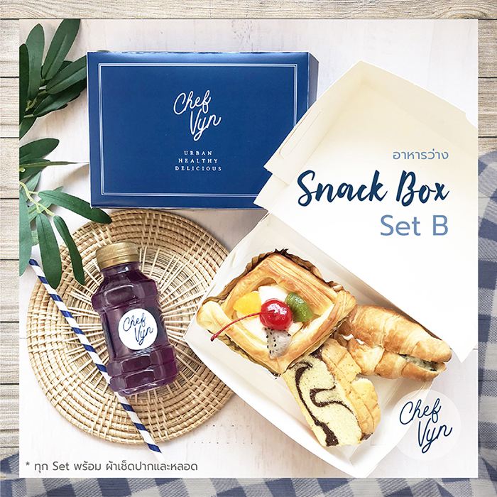 ฝั่งจัดเบรก: เลือกเมนู Snack Box จาก Chefvyn ที่เน้นสุขภาพแบบกิลต์ฟรี (Guilt-free) เช่น แซนด์วิชไส้ทูน่า,ขนมปังธัญพืช หรือการเปลี่ยนจากน้ำผลไม้กล่องสำเร็จรูปเป็นน้ำสมุนไพร