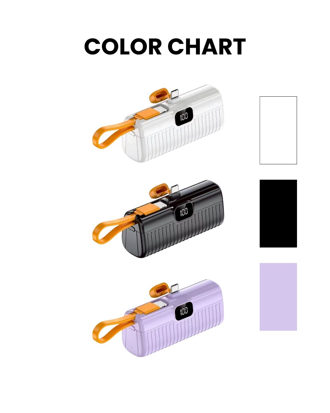 ได้มาตราฐาน ขนาดกระทัดรัด น้ำหนักเบา พกพาสะดวกไปได้ทุกที่ ใช้งานง่าย ครอบคุมทุกการชาร์ต สีสันน่ารักสวยงาม